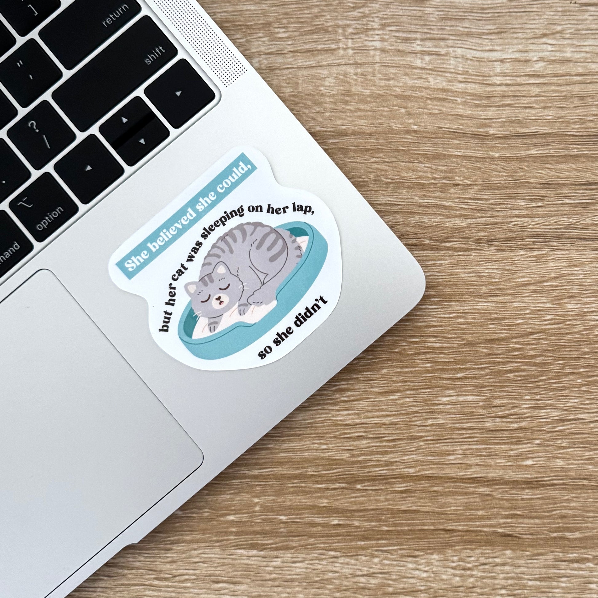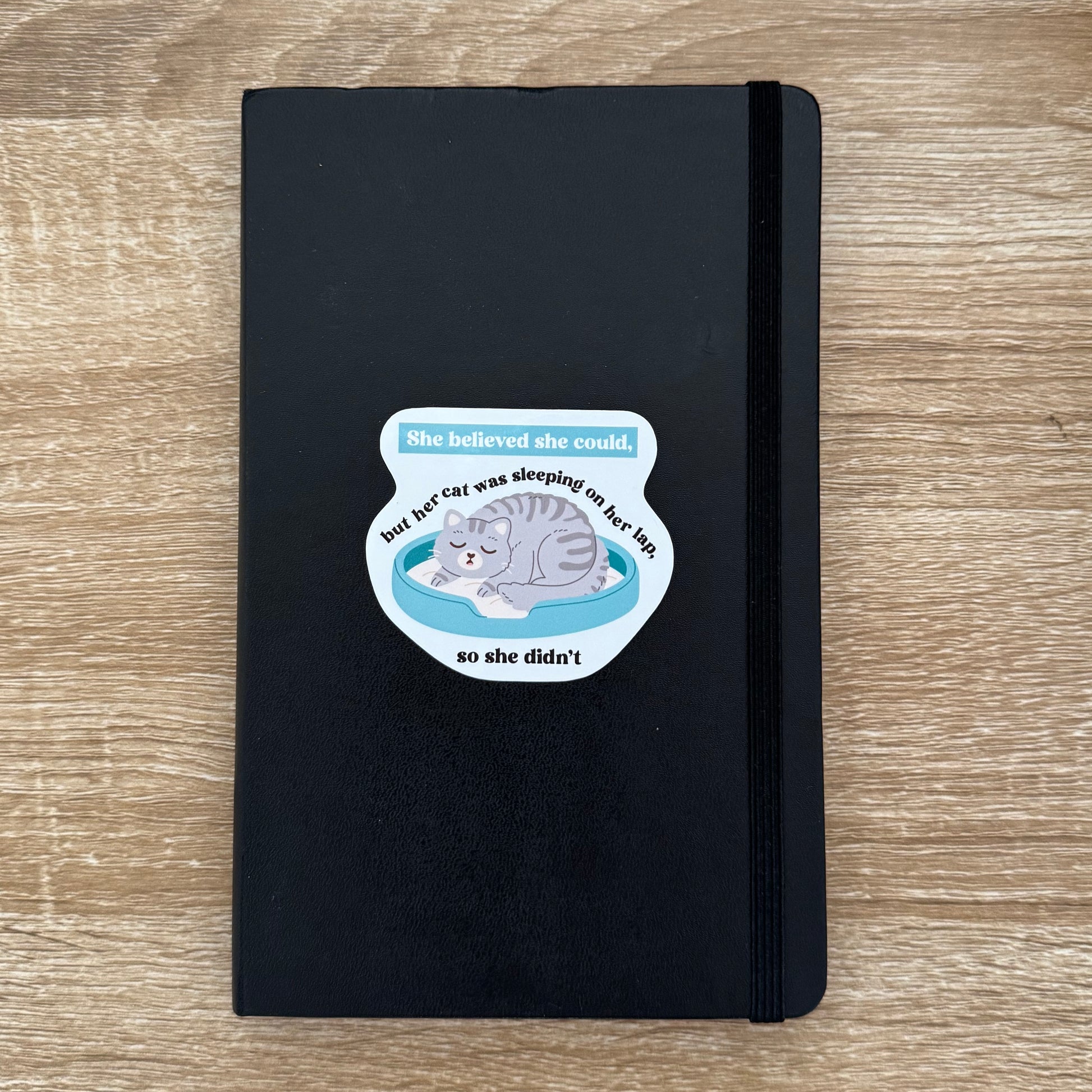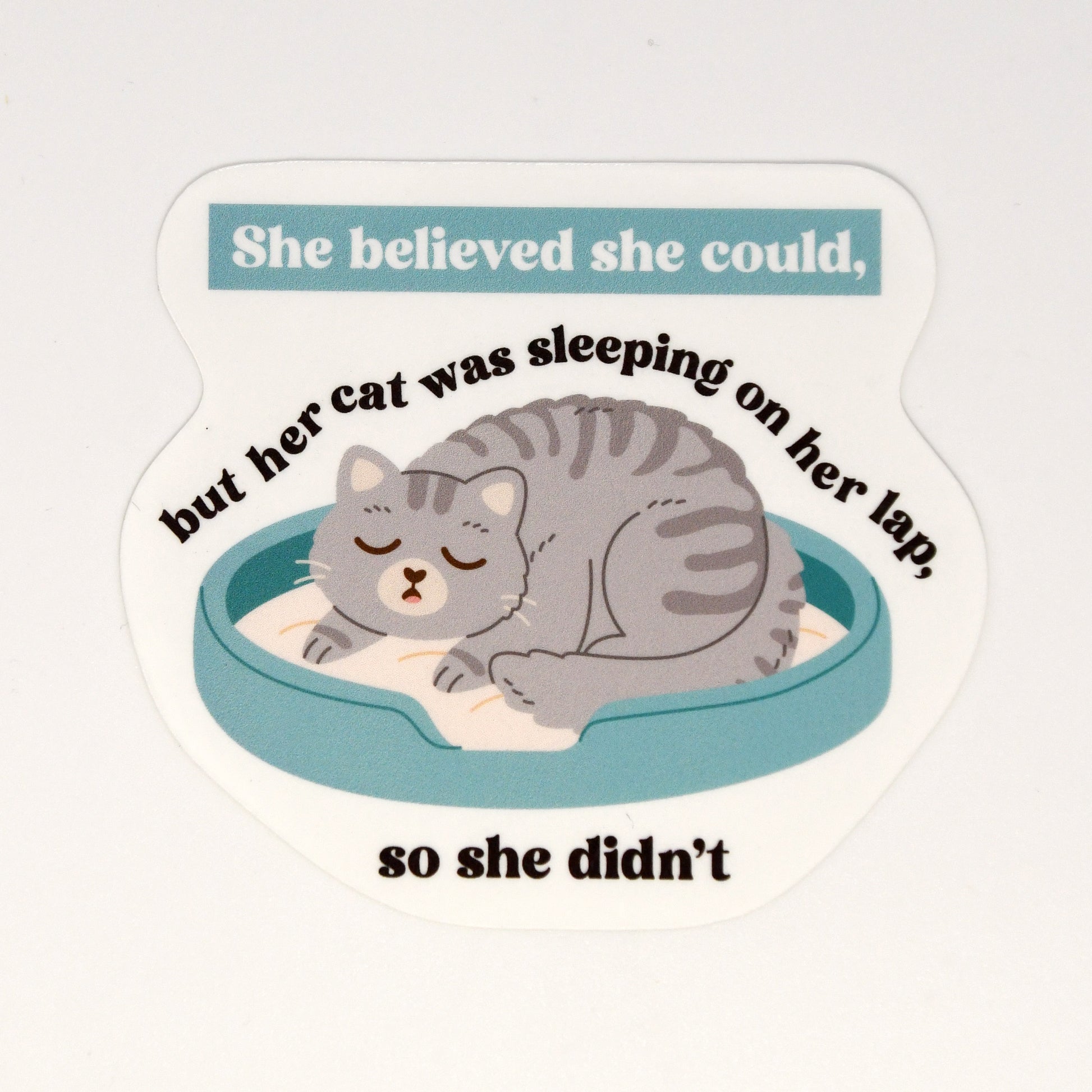Embrace cat-parent priorities with this cute and relatable sticker: “She believed she could, but her cat was sleeping on her lap, so she didn’t.” Perfect for laptops, journals, or water bottles, it’s a fun way to show that when it comes to feline naps, everything else can wait! 🐱💕